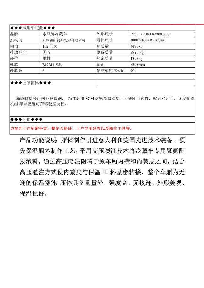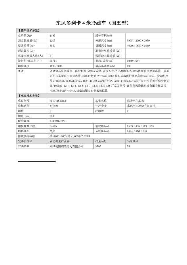 東風多利卡4米冷藏車(國五型)